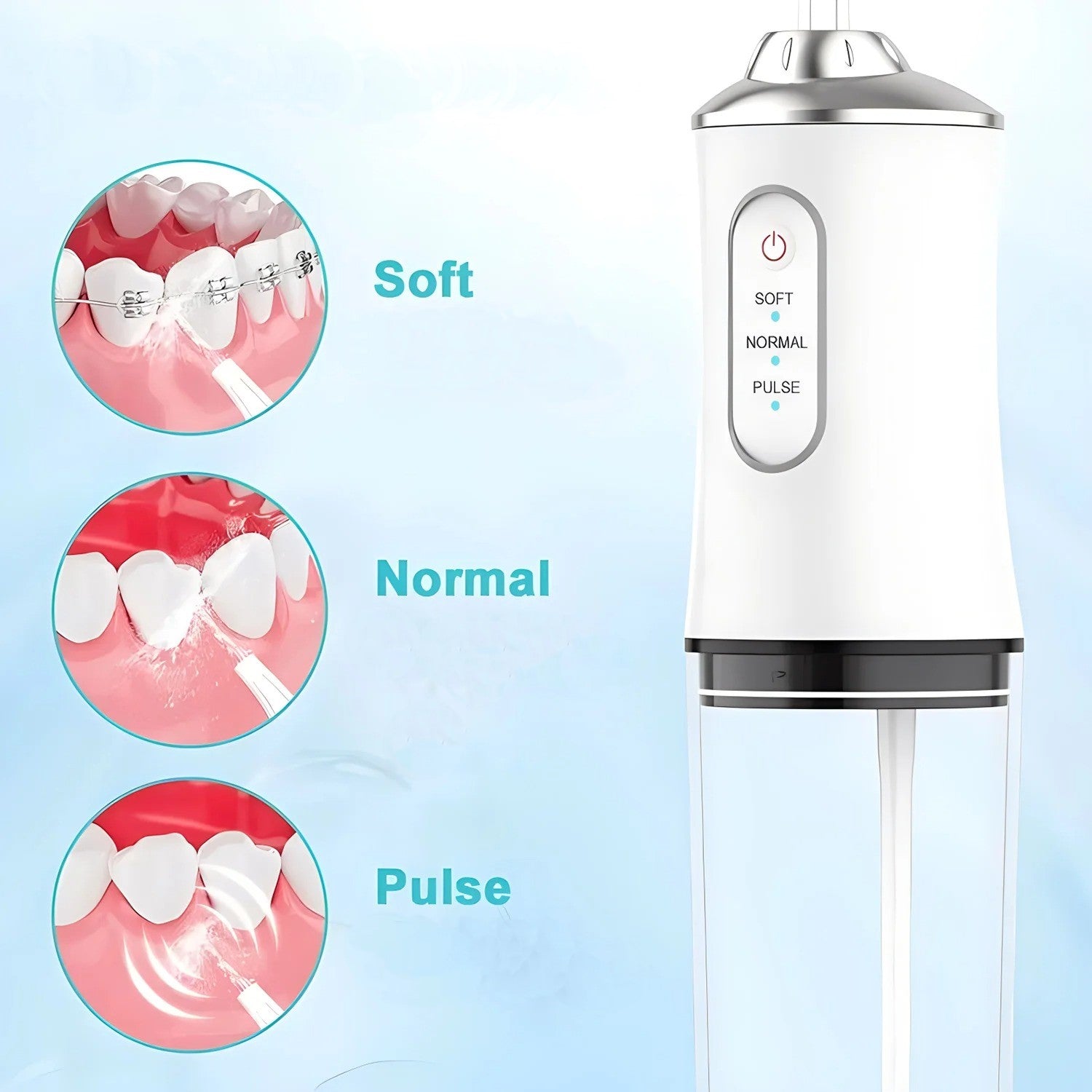 L'Aquilident propose trois modes de jet : doux, fort et impulsione. Ces modes offrent une polyvalence d'utilisation pour s'adapter à vos besoins spécifiques. Vous pouvez choisir le mode qui vous convient le mieux pour un nettoyage efficace et confortable de vos dents et gencives.
